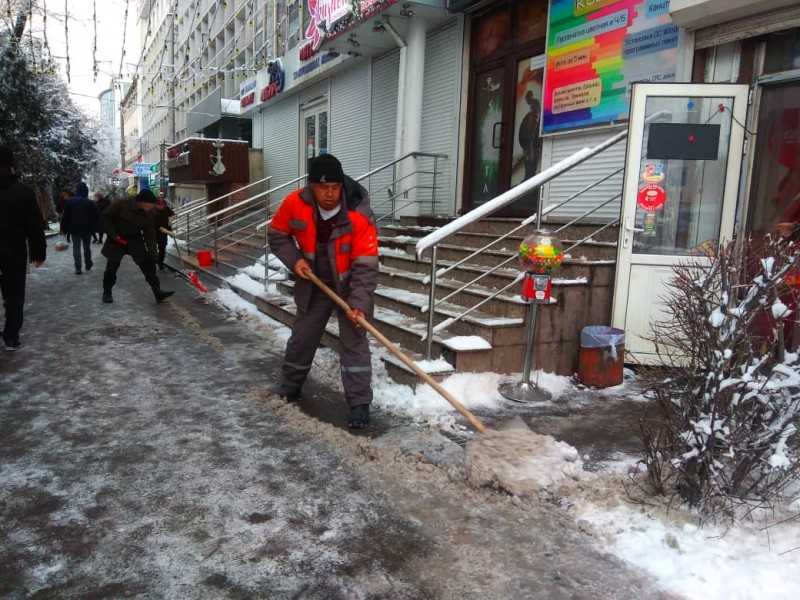 В штатном режиме по городу Бишкек работают порядка 663 дворника, 117 грузчиков Тазалыка, сотрудники ДЭО и команда из ста человек по вывозу ТБО.