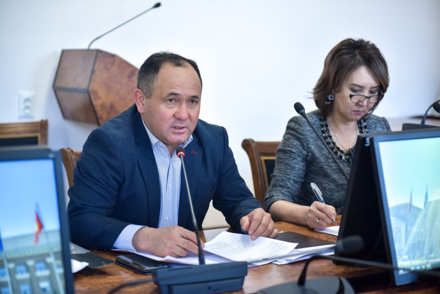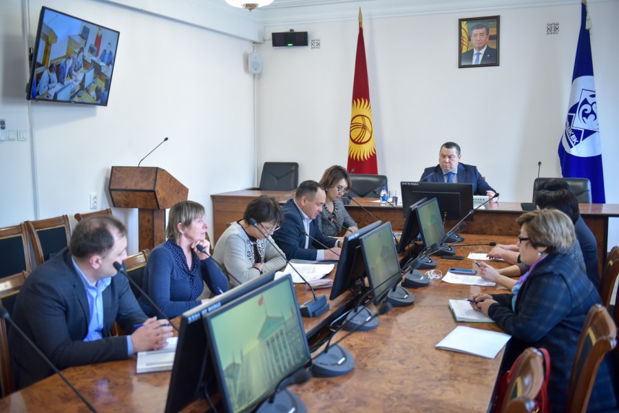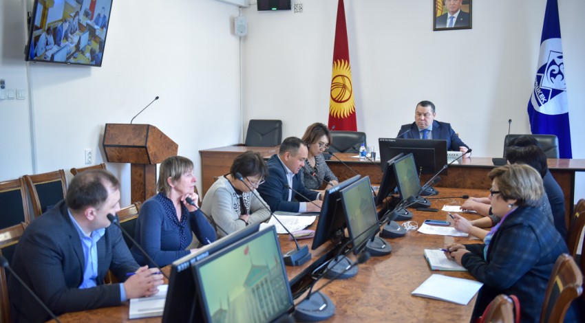 В зале заседаний столичной мэрии прошло рабочее совещание под руководством временно исполняющего обязанности вице-мэра по социальной политике, руководителя аппарата муниципалитета Балбака Түлөбаева по недопущению завоза и распространения короновирусной инфекции в столице.