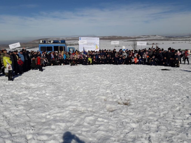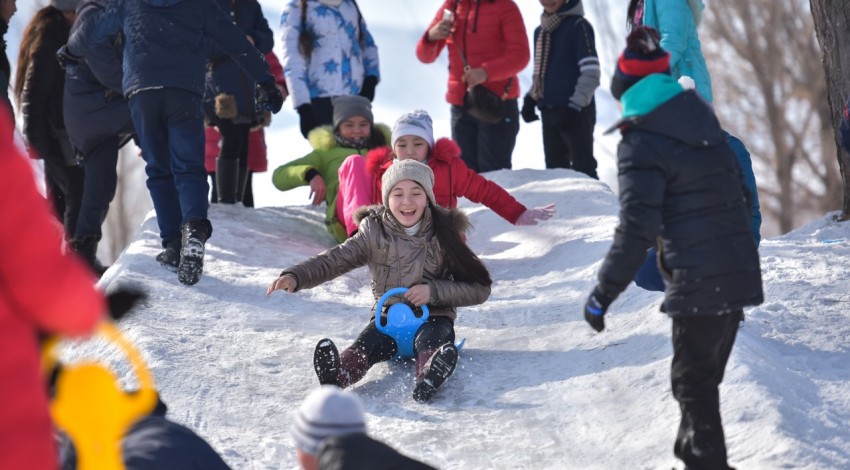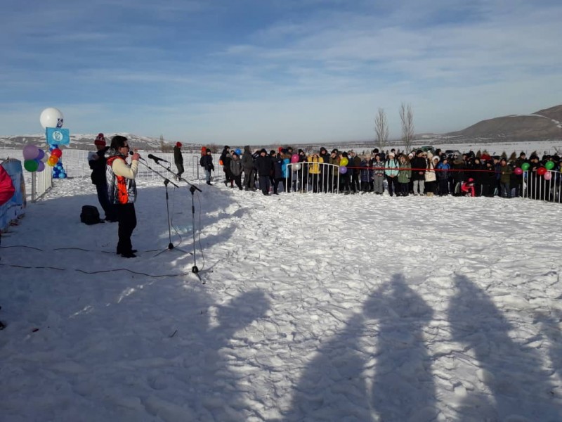 На склоне горы села Стрельниково порядка 400 Детей из малообеспеченных семей, воспитанники центра реинтеграции для несовершеннолетних детей «Айданек», центра реабилитации детей и молодежи и центра социальной адаптации детей приняли участие в веселых зимних стартах.