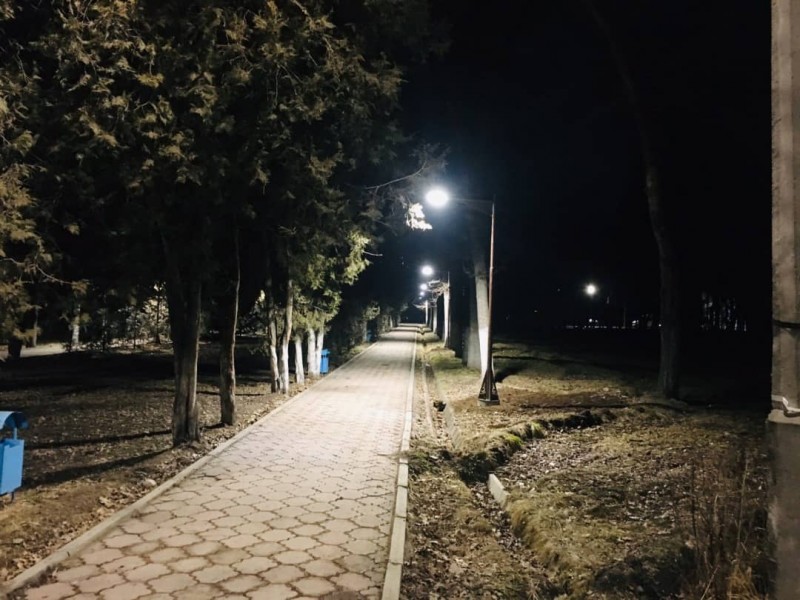 Частично заменена сеть наружного освещения кабелем под землей, протяженностью 200 метров. Установлены 20 новых торшерных стоек, изготовленные в производственном цехе предприятия.