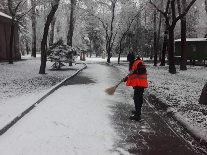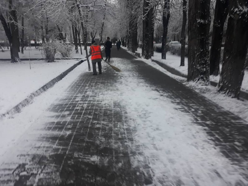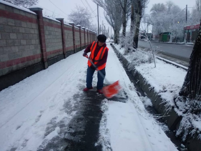 В штатном режиме по городу Бишкек работают порядка 663 дворника, 117 грузчиков Тазалыка, сотрудники ДЭО и команда из ста человек по вывозу ТБО.