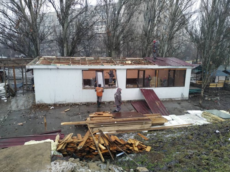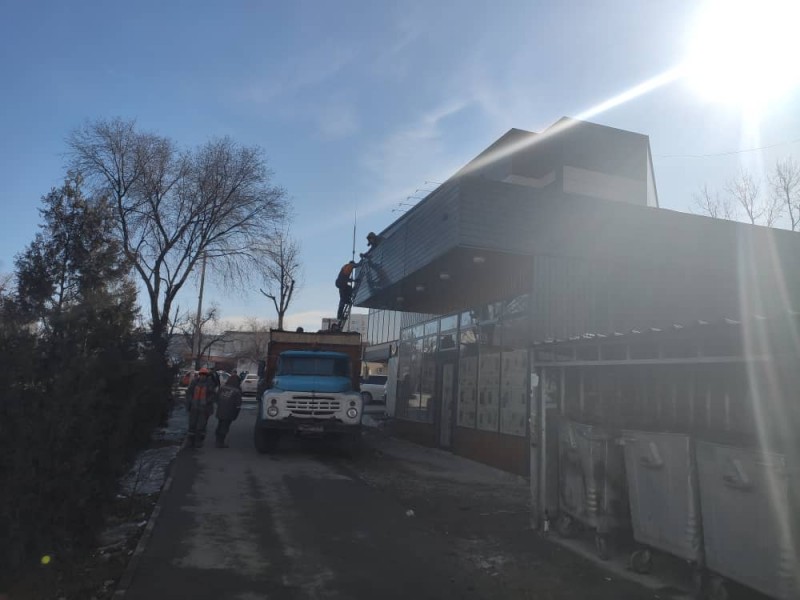 Сотрудники УЗС демонтировали и незаконный киоск на пересечении ул. Айни и ул. Чортекова, металлическое ограждение, длиною в 45 метров на ул. Абдымомунова 290, а также павильон на ул. М.Ганди 334.
