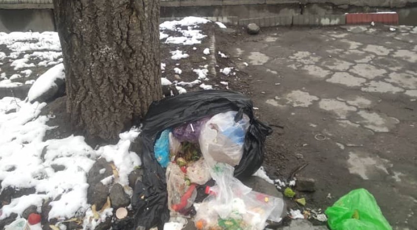 За выброс бытового мусора на улице Юнусалиева 94 составлен протокол в отношении частного предпринимателя по первой части статьи 71, горожанин должен выплатить штраф в размере 5 тысяч 500 сомов.