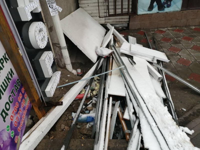 За несоблюдение чистоты и порядка на прилегающей территории составлен протокол в отношении арендатора цветочного магазина на проспекте Жибек-Жолу, 203 по статье 70.