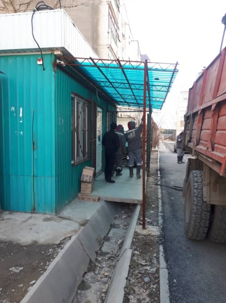 Сегодня мы демонтировали самовольно установленный павильон и разобрали навес в микрорайоне №12 возле дома 52.