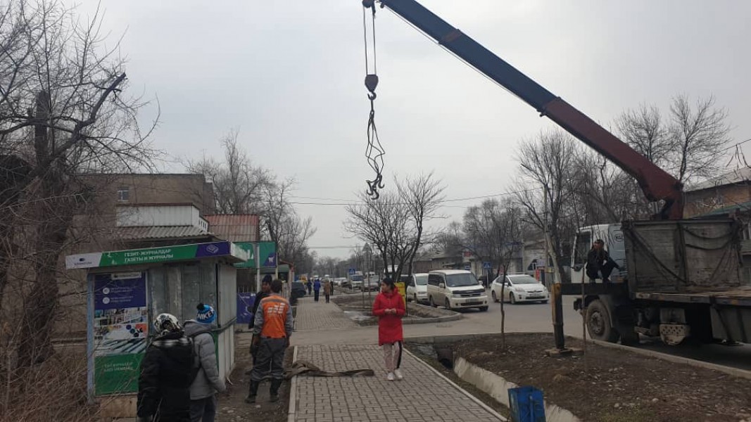Управление землепользования и строительства (УЗС) и спецподразделение МП «Тазалык» мэрии города Бишкек продолжают демонтаж незаконно установленных объектов.
