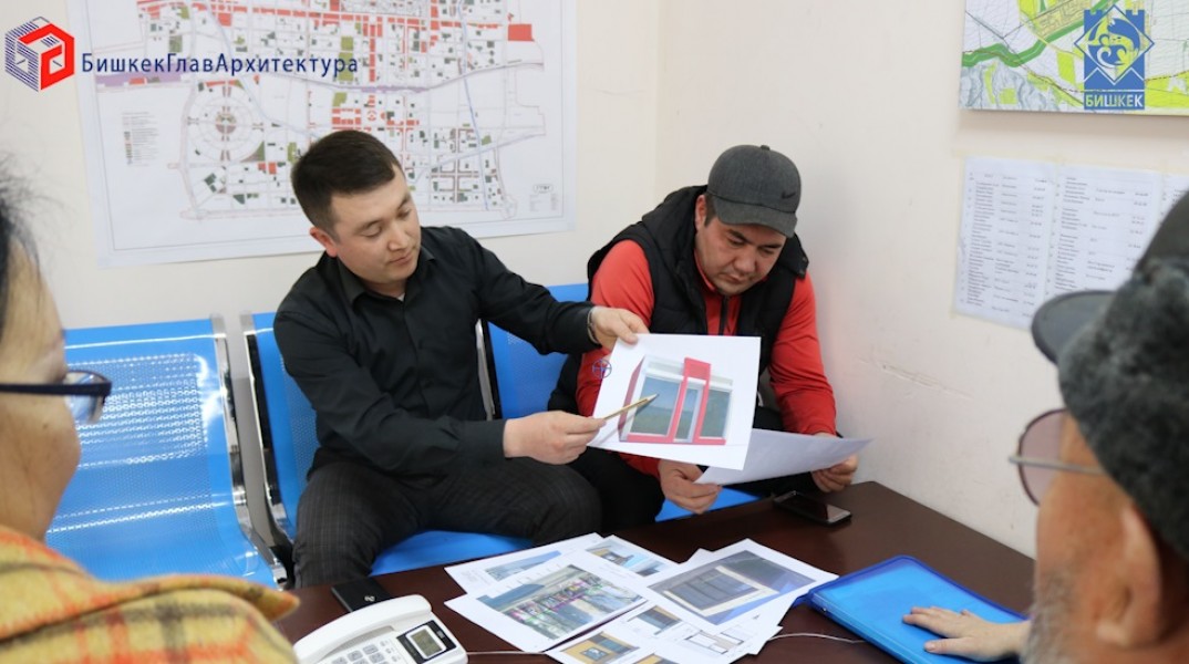 Специалисты отдела объектов облегченного типа муниципального предприятия «Бишкекглавархитектура» обсудили с предпринимателями дизайн торговых павильонов. Речь идет пока о киосках, расположенных в самом центре Бишкека — на улице Московской и внешний вид которых вызывает не эстетические эмоции.