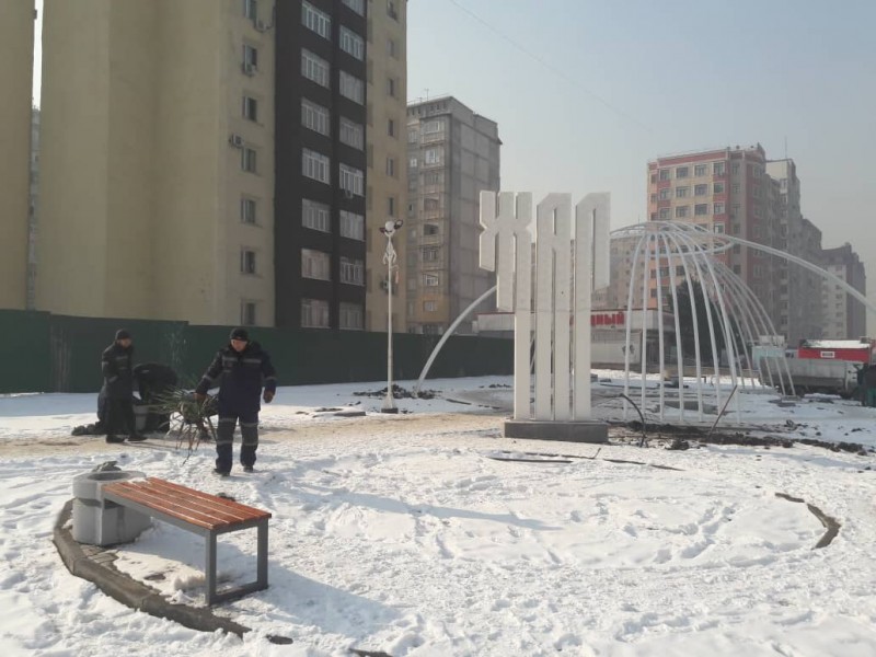 Осенью Тазалык проложил здесь брусчатку, установил бордюры и скамейки, а Бишкекзеленхоз провели планировочные работы, завезли растительный грунт и подготовили землю для весенних посевов и посадок.