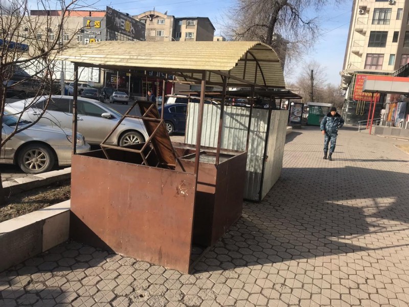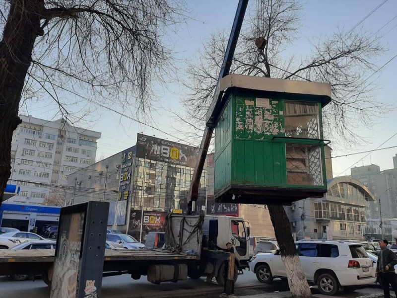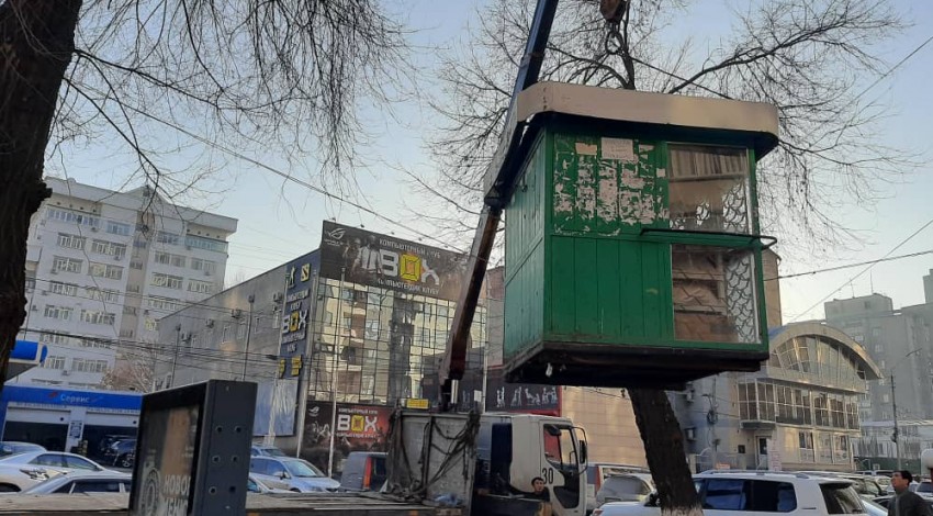 Демонтированы стихийные газетные киоски на перекрестках улицы Токтогола с ул. Исанова и ул. Абдрахманова.