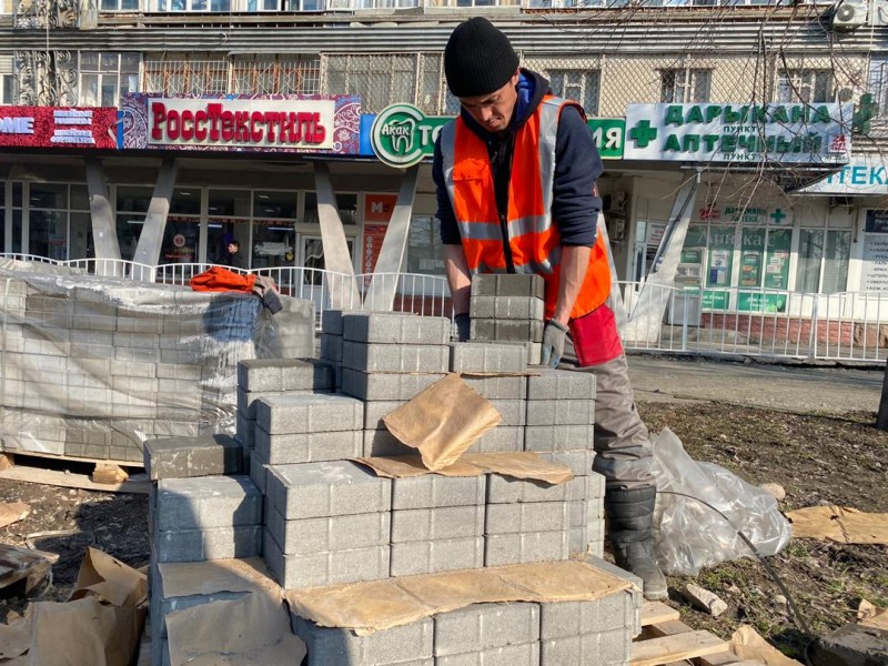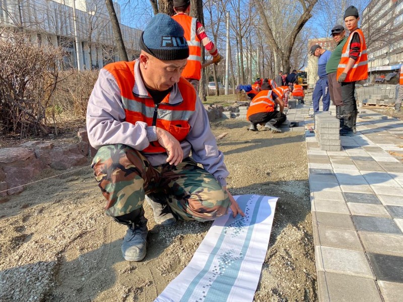 Порядка 40 сотрудников муниципального предприятия «Тазалык» прокладывают брусчатку площадью 4 тысячи квадратных метров, устанавливают бордюры. Совсем скоро здесь появятся 30 скамеек и 9 урн.