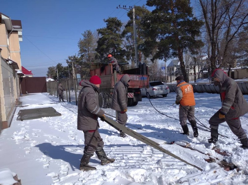 Первым под вчерашний снос попало самовольное 38-метровое металлическое ограждение на ул. Байтик - Баатыра 12.