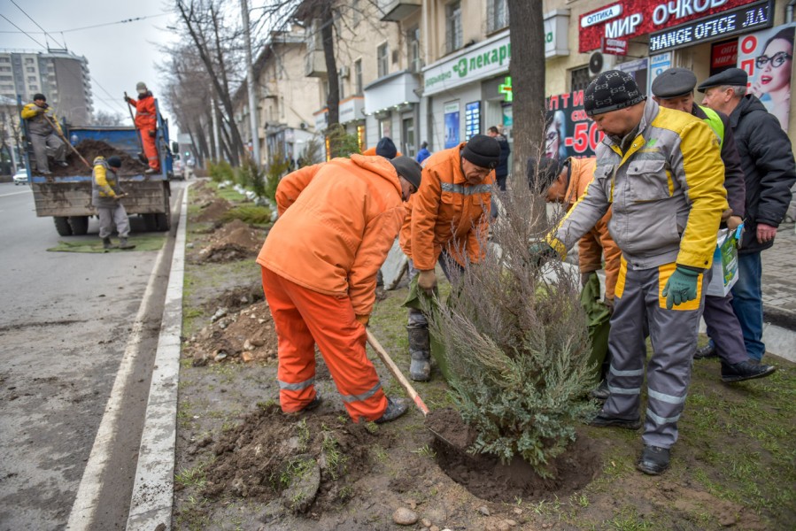 Также на пересечении проспекта Манаса и улицы Киевской сотрудники Бишкекзеленхоза посадили 15 саженцев можжевельника. Горожане, наверное, помнят, что раньше на этом участке был асфальт, где была организована самовольная парковка. Год назад у нас было целое сражение за город с предпринимателями, которые ведут свою деятельность на проспекте. Но с помощью неравнодушных горожан, активистов и сотрудников УВД Ленинского района мы отвоевали свободу для деревьев и зелени.