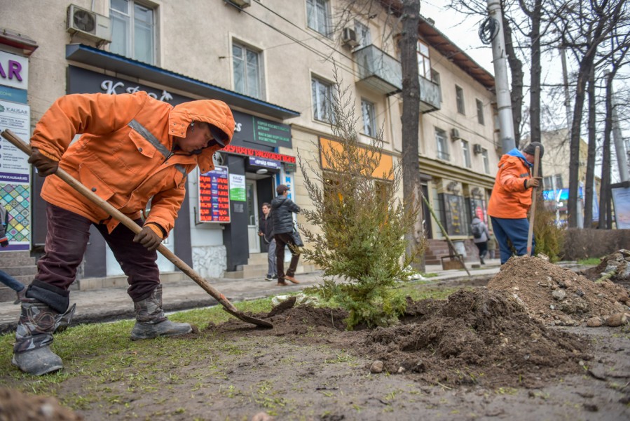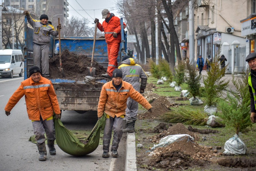 Муниципальное предприятие "Бишкекзеленхоз" завершает зимний сезон посадок деревьев.