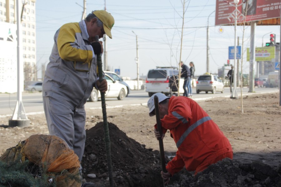 Сотрудники муниципального предприятия "Бишкекзеленхоз" приступили к озеленению нового сквера в микрорайоне "Джал" на пересечении улиц Тыналиева и Ахунбаева.