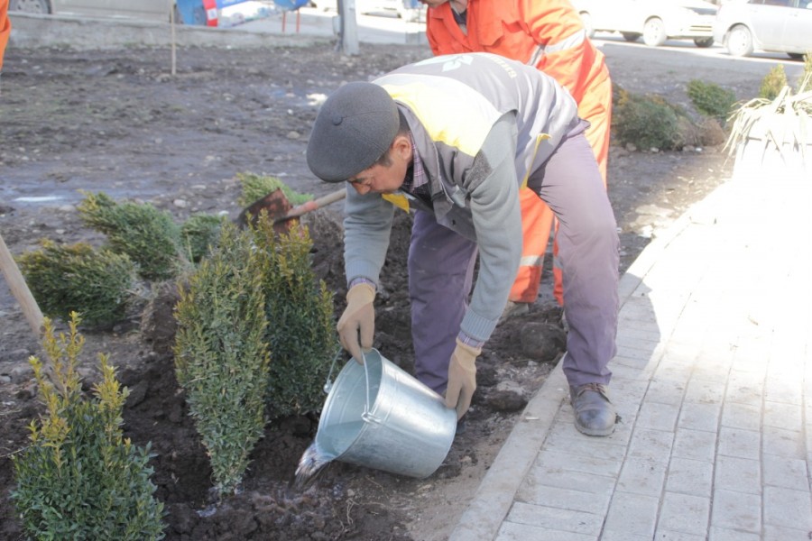 Наши озеленители посадили 17 лиственных саженцев березы и катальпы, 18 саженцев можжевельника, 17 саженцев цветущих кустарников вейгелы, спиреи, гибискуса и кизильника, 30 саженцев самшита и одну голубую ель.