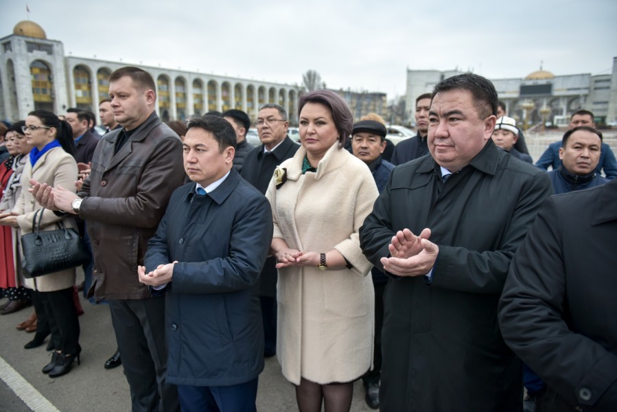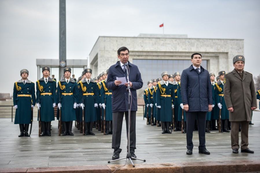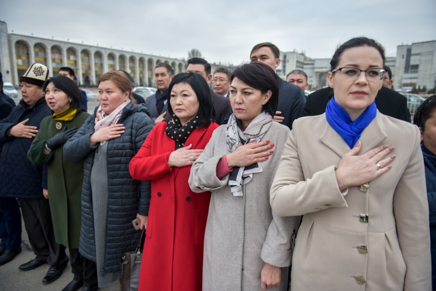 Сегодня, 3 марта 2020 года, на центральной площади Ала-Тоо состоялось торжественное мероприятие в честь 28-летия Государственного флага Кыргызской Республики, в котором приняли участие горожане, мэр столицы Азиз Суракматов, председатель Бишкекского городского кенеша Жаныбек Абиров, командующий Национальной гвардией Вооруженных сил КР Талантбек Эргешов, главы районных акимиатов, руководители и сотрудники городских служб, структурных подразделений.