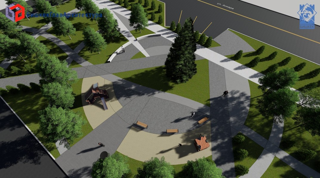 Главный художник Марат Жороев с сотрудниками отдела благоустройства и ландшафтной архитектуры презентовали эскизный проект будущего сквера, в котором предусмотрены прогулочные зоны, новые тротуары, скамейки и, конечно, посадка разновидных зеленых насаждений.