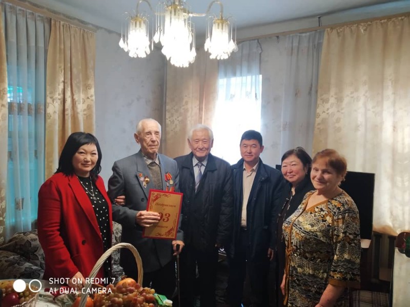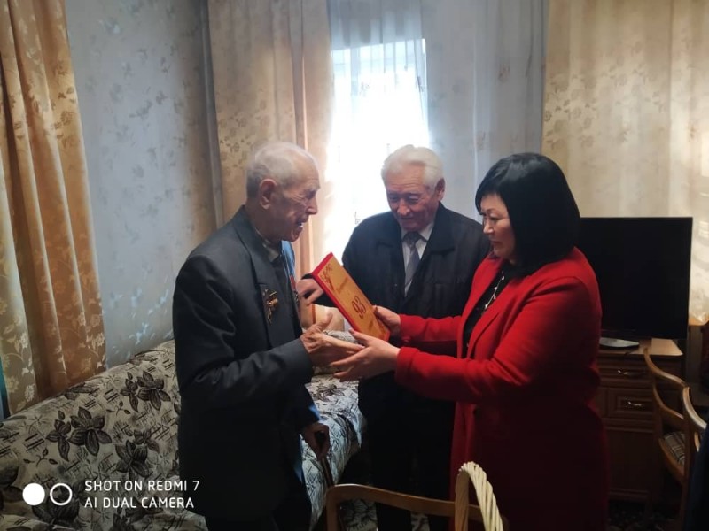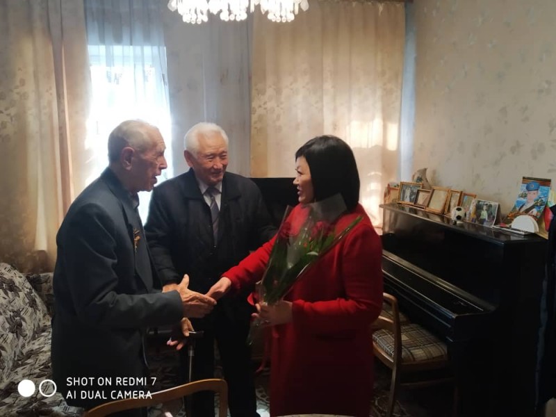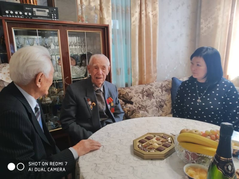 Заместитель главы Первомайского района Аида Рысбаева, председатель совета ветеранов Маркил Ибраев, соцработники и МТУ района поздравили с днем рождения Николая Кузьмича, вручили подарки, поговорили и попили чаю.