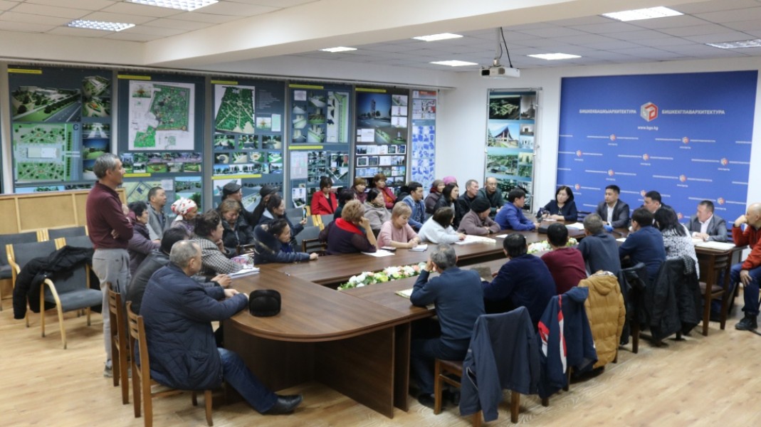 К нам на этот раз пришли порядка 40 человек, мы выслушали каждого жителя, обсудили возможные пути решения из этой непростой ситуации. Главный архитектор и специалисты Бишкекглавархитектуры подробно ознакомили и рассказали горожанам о возможных вариантах решения вопроса.