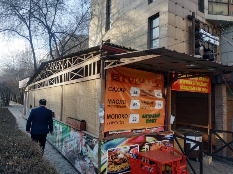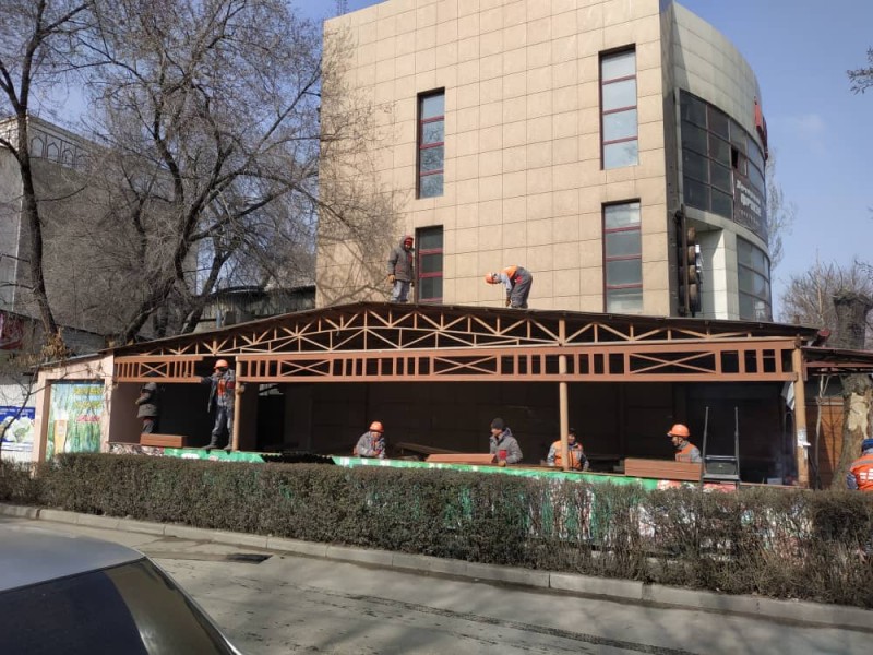Демонтировано кафе «Вечерний Фрунзе», который был построен без разрешительных документов на пересечении ул. Чокморова и ул.Уметалиева и создавал множество неудобств горожанам.