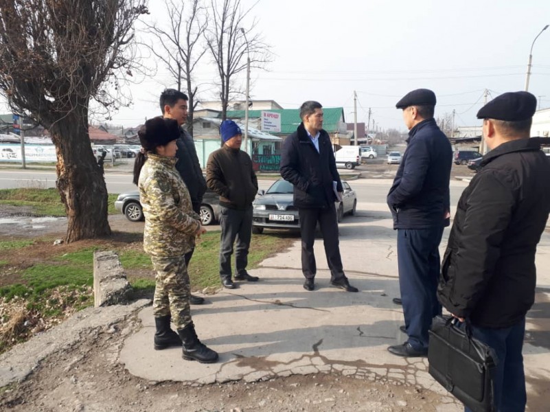 Специалисты муниципальных предприятий «Бишкекглавархитектура», «Бишкекские стоянки и парковки», управления земельных ресурсов (УЗР) и отдела чрезвычайных ситуаций Ленинского района оперативно выехали на обследование участка.