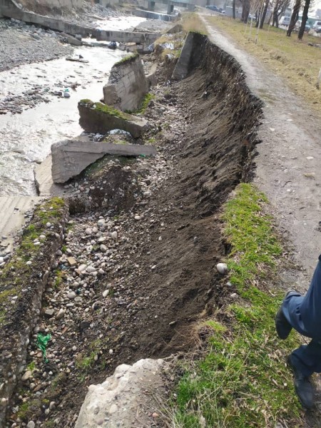Вдоль русла реки «Ала-Арча» на отрезке от улицы Кочкорской до ул. Л.Толстого произошел размыв грунта.
