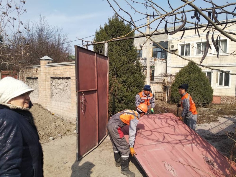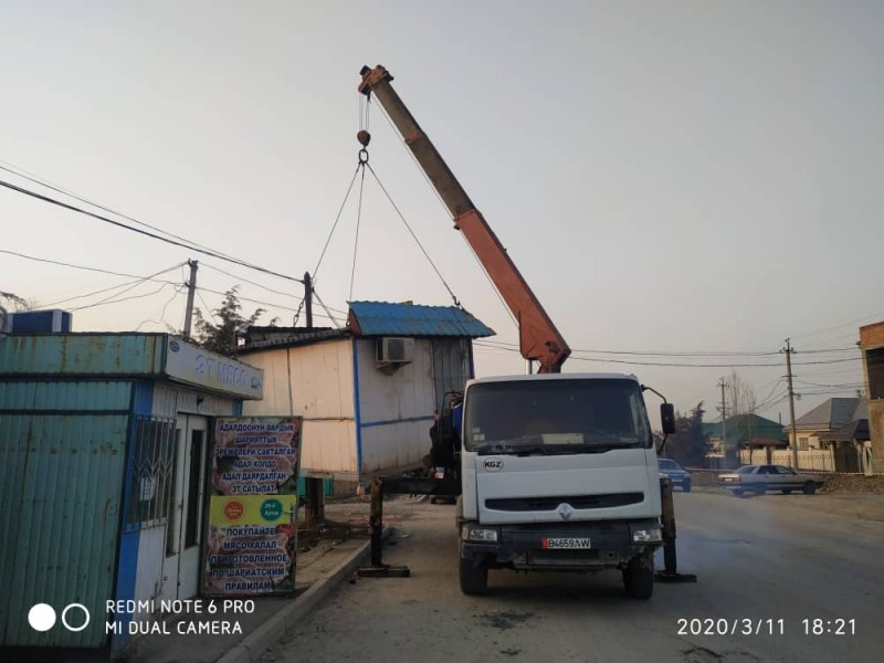 Без разрешительных документов павильон в жилом массиве «Арча-Бешик» на ул. Шералиева пришлось убрать, по той же улице убрали незаконно установленный 20 тонный контейнер.