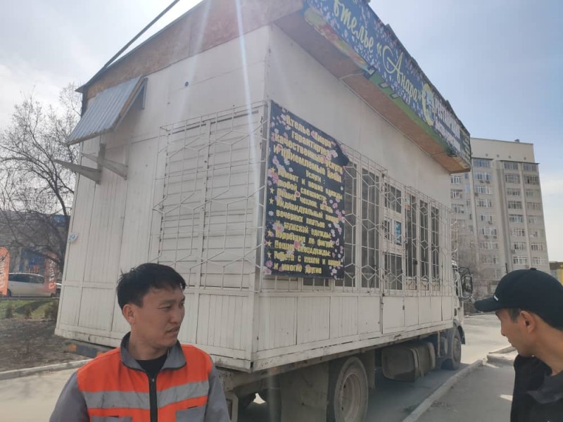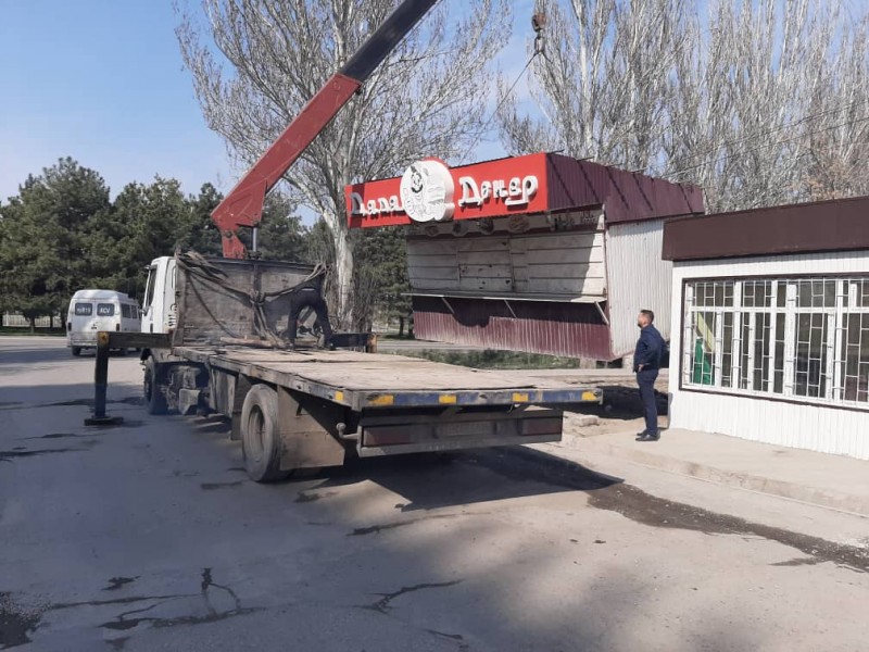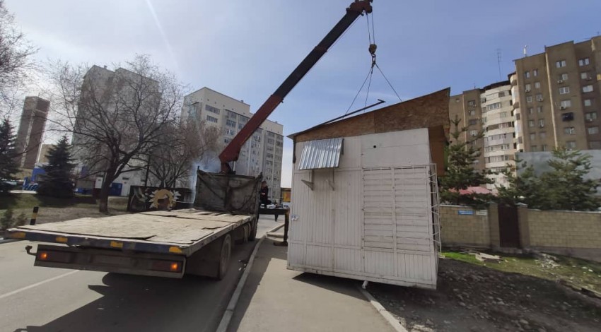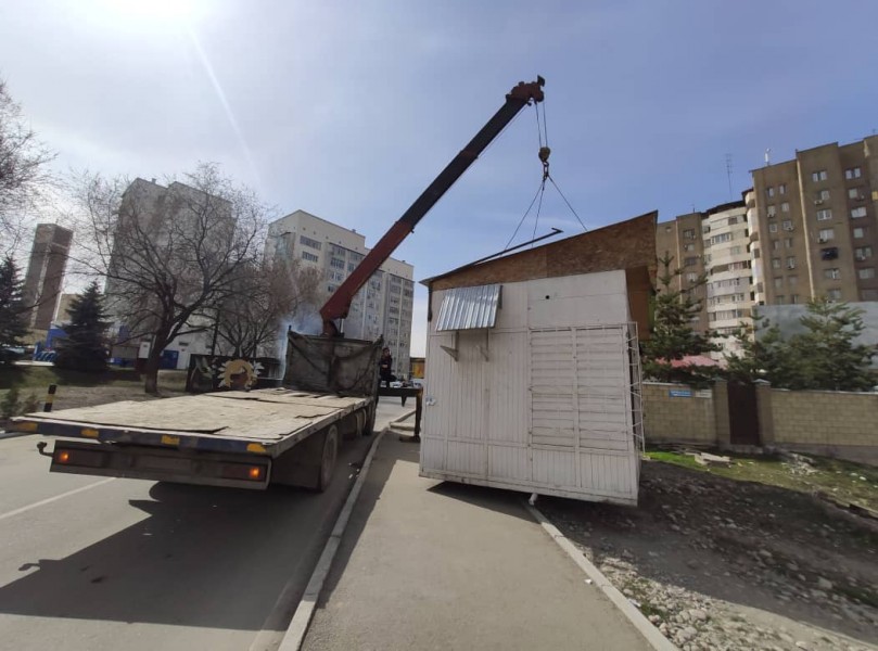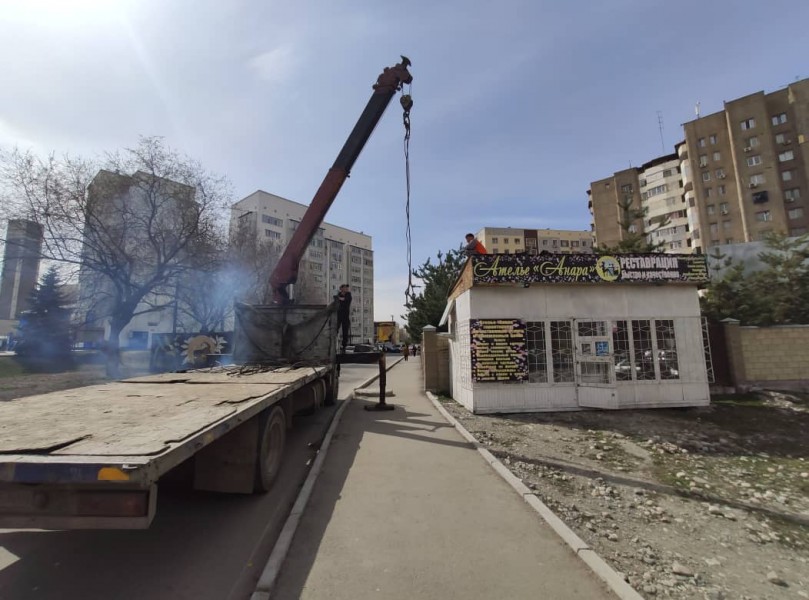 Сотрудники управления землепользования и строительства (УЗС) и спецподразделения МП «Тазалык» и продолжают демонтаж незаконно установленных объектов.