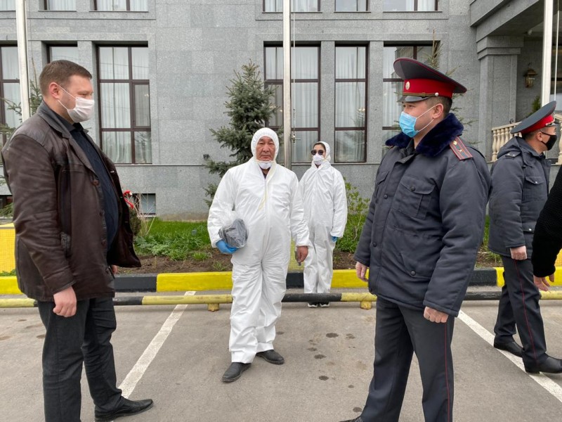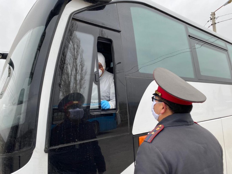 Сегодня утром на контрольно-пропускном пункте «Ак Тилек» аким Октябрьского района Максим Ситников совместно с начальником Октябрьского РОВД Уланбеком Султановым встретили вновь прибывших граждан из Алматы. Для безопасности и исключения контактов от КПП Ак Тилек до точки назначения колонну сопровождали сотрудники милиции, акимиата.