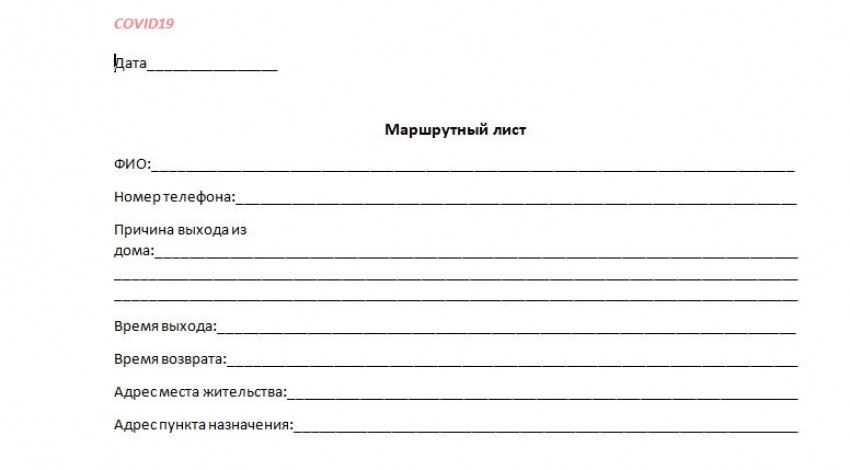Дорогие горожане! При каких-либо передвижениях по городу просим при себе иметь удостоверение личности и маршрутный лист, который можно составить самостоятельно, от руки.Анкета должна содержать следующие данные: ФИО, номер телефона, причина и время выхода из дома и возврата, место жительства и пункт назначения. Бланк маршрутного листа можно скачать здесь.Образец.