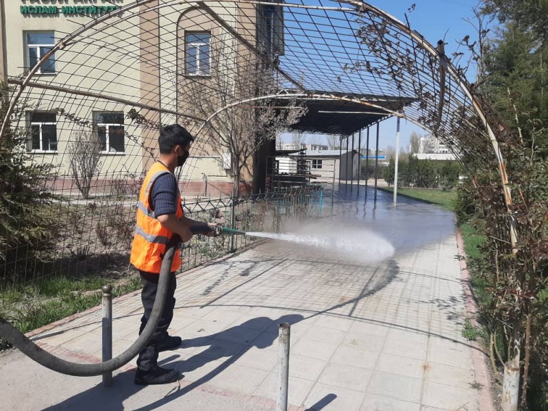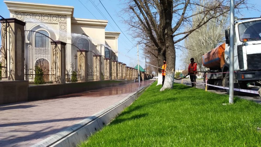 Сотрудники муниципального предприятия «Тазалык» усиленно дезинфицируют столичные улицы, тротуары, больницы, мечети во всех четырех районах города.Спецобработку прошли порядка 20 улиц Первомайского района, столько же улиц и переулков Свердловского района, порядка 25 улиц Ленинского и 7 центральных улиц Октябрьского районов. Список улиц здесь.