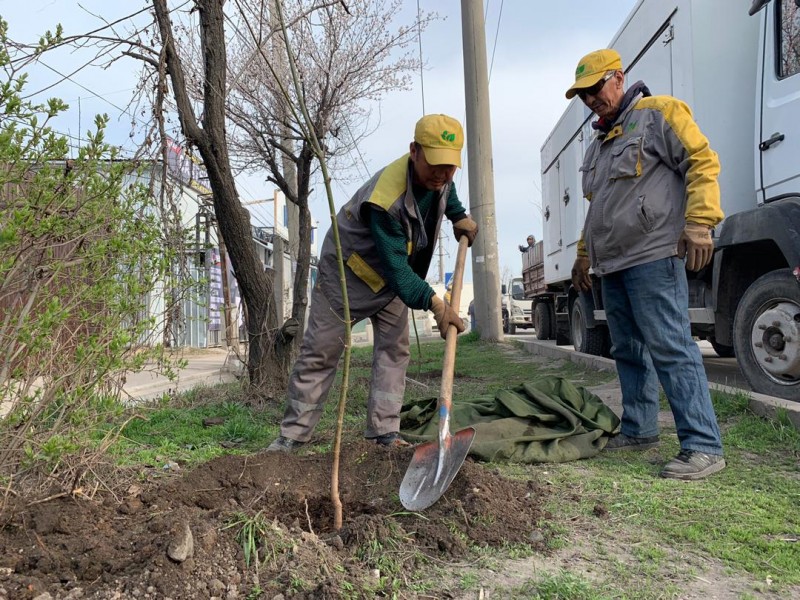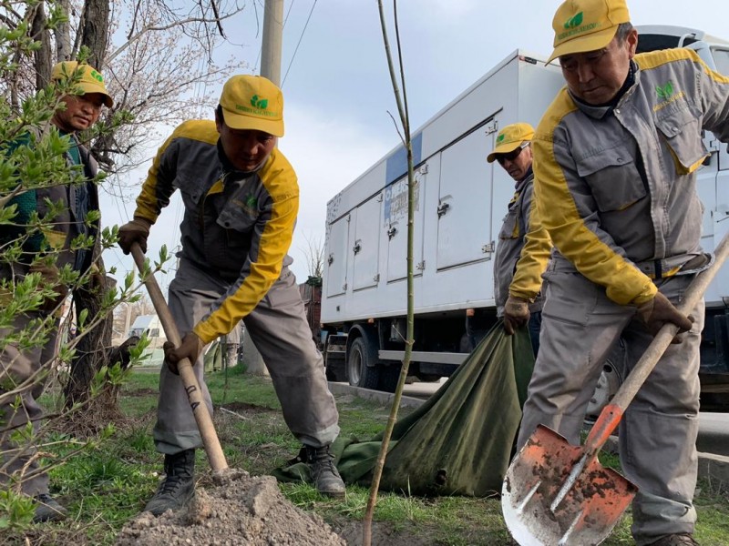 На пересечении улиц Куттубаева и Айтиева – 30 саженцев клена и 150 саженцев березы в сторону улицы Каралева;