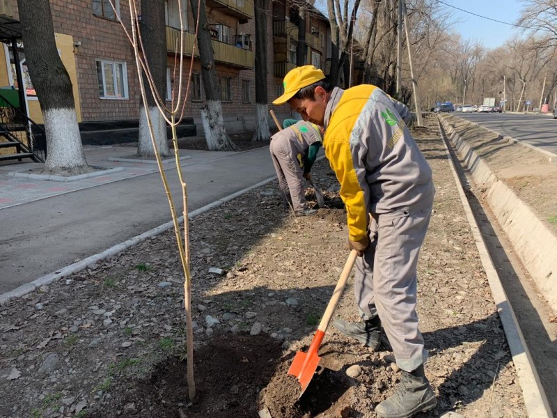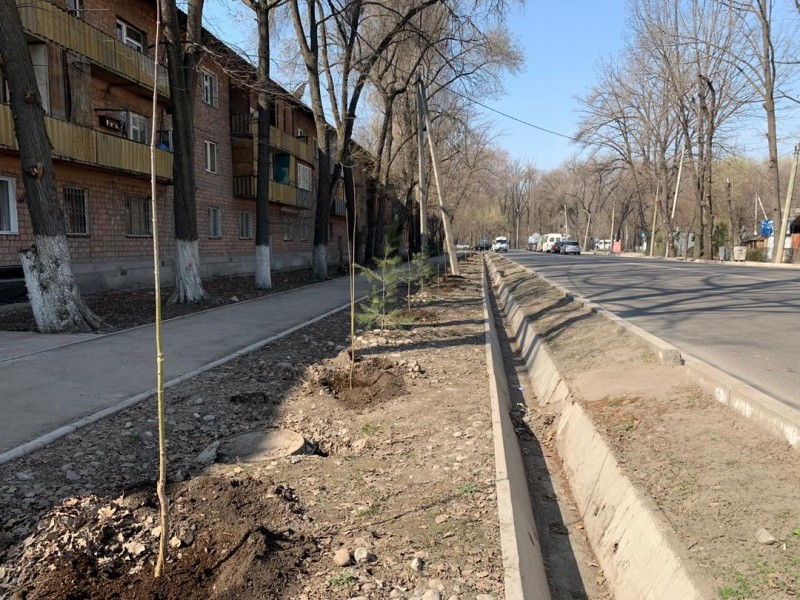 По улице Орозбекова от БЧК до Щербакова высажено 80 саженцев клена;