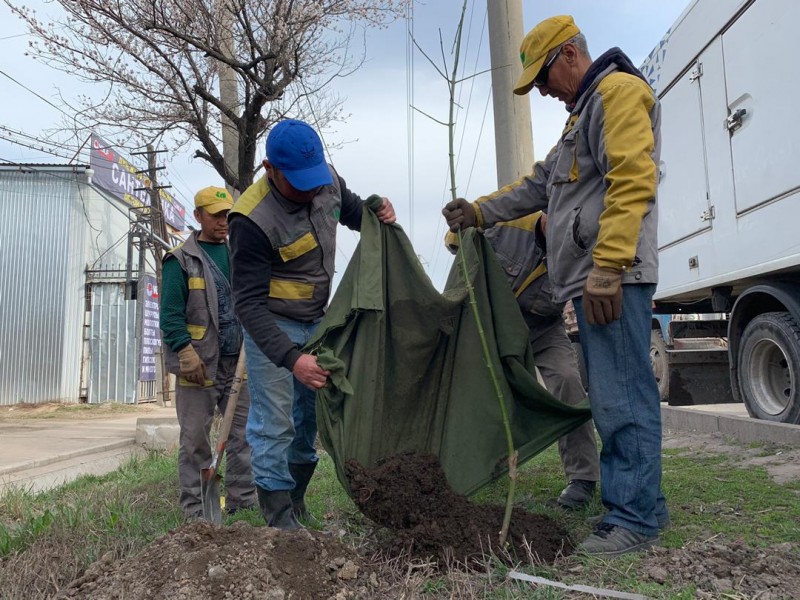 По улице Фере от ул. Абдрахманова до ул. Орозбекова – 100 саженцев ивы плакучей и тополей, также 200 саженцев карагача;