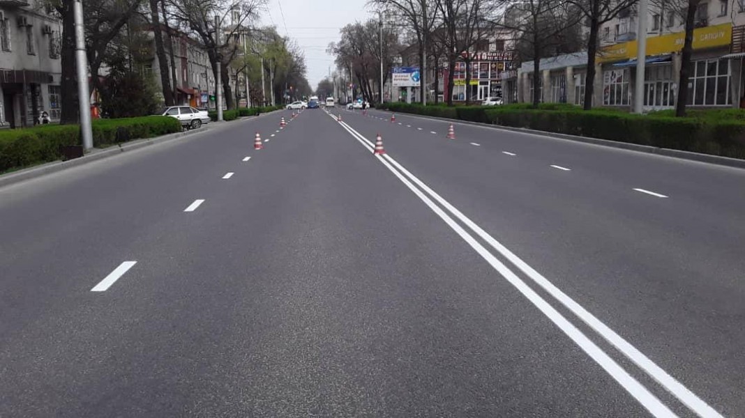 Свежая разметка нанесена по проспекту Чуй от ул.Осмонкулова до ул. Турусбекова, а по пр. Манаса от пр.Жибек-Жолу в южном направлении обновляется разметка пешеходных переходов, стоп-линий.
