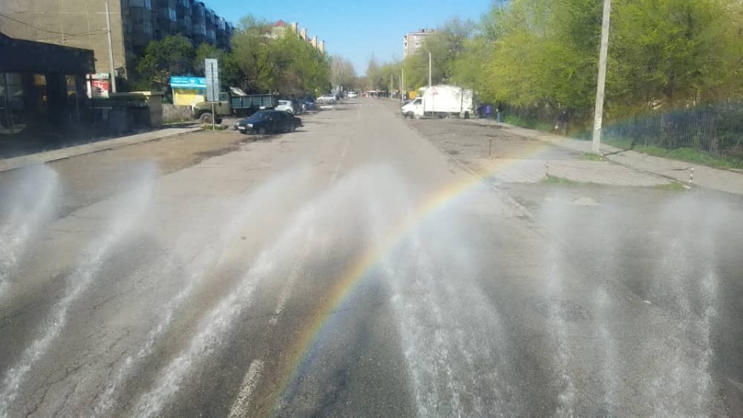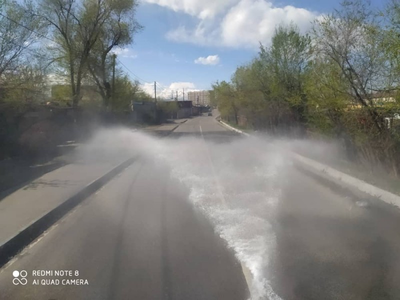 В этот раз было задействовано 54 сотрудника Тазалыка на 24 поливомоечных машинах и мини-тракторах “Беларус”. Для мойки используется раствор гипохлорита кальция под контролем Госсанэпидемнадзора.