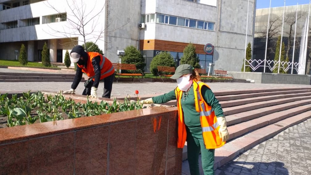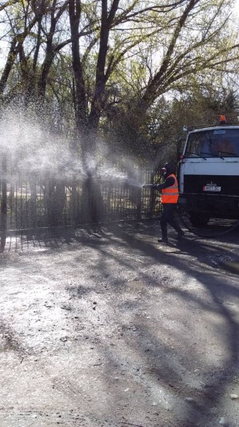 Сотрудники муниципального предприятия «Тазалык» усиленно дезинфицируют столичные улицы, тротуары, остановки, мусорные площадки во всех четырех районах города.