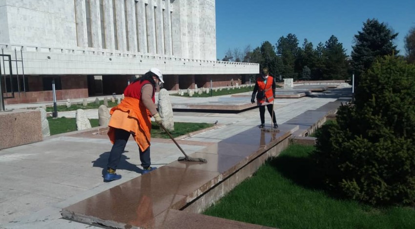 В Ленинском районе вычищены порядка 20 улиц, под волну дезинфекции попали 197 КП, 1095 баков, 164 остановки, а также урны, лестницы, скамейки, памятники. В селе «Чон-Арык» обработано 10 улиц, 79 КП, 563 мусорных бака и 64 остановки.