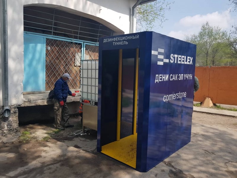 Столичные предприниматели разработали дезинфицирующие установки для автотранспорта, пешеходов и подарили городу. Прямо сейчас две кабины устанавливаются в республиканской клинической инфекционной больнице.
