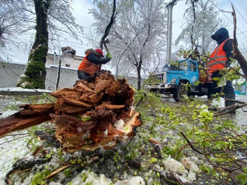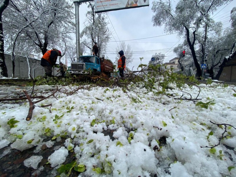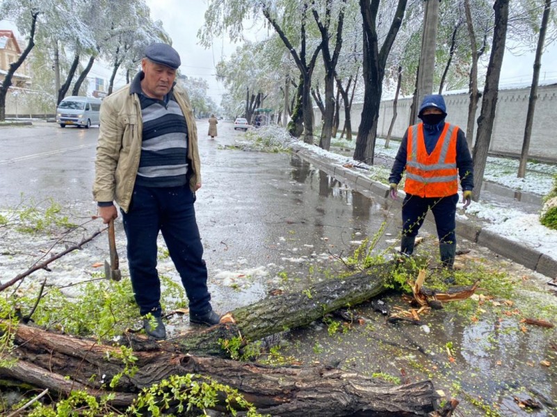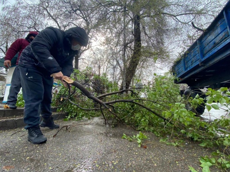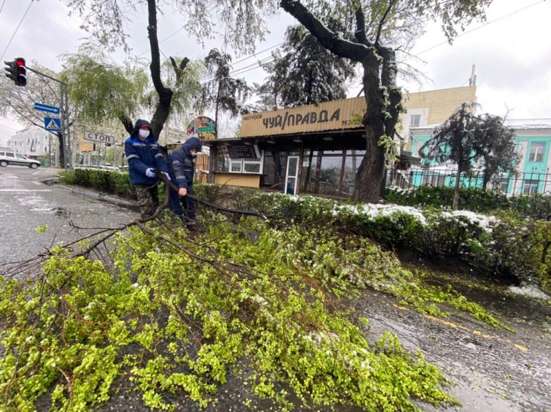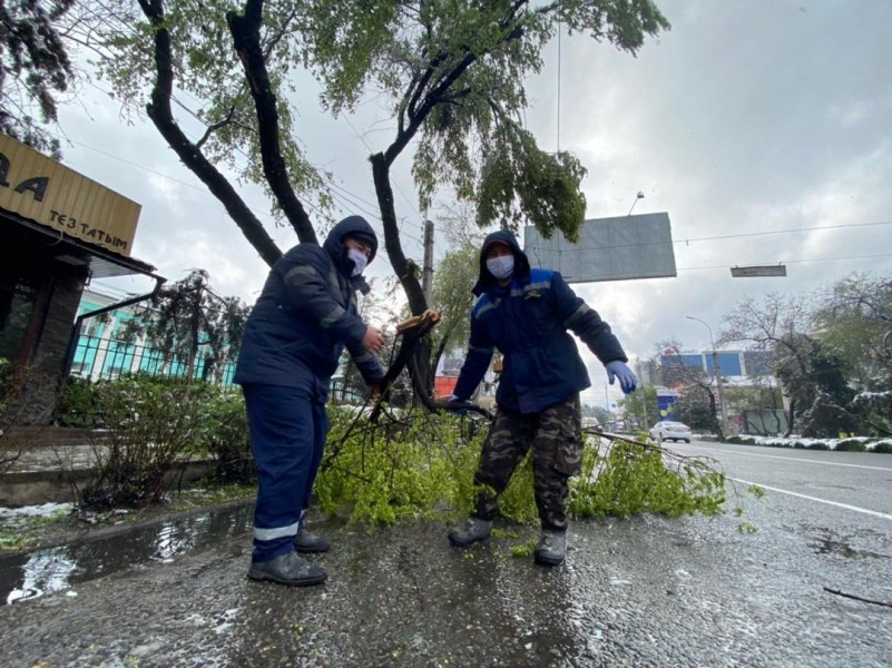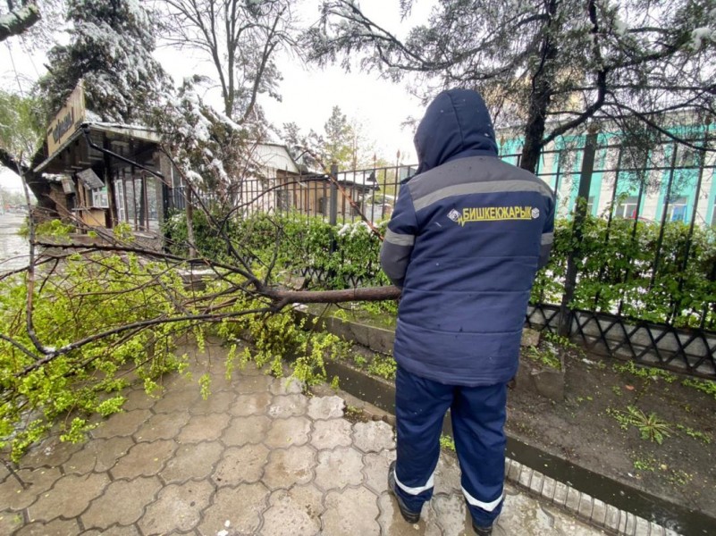 С самого утра поступило порядка 40 заявок от горожан о повреждении деревьев. На место выезжают аварийные бригады муниципального предприятия «Бишкекзеленхоз». На помощь прибыли и бригады «Тазалык», «Бишкексвет», «Бишкекасфальтсервис».