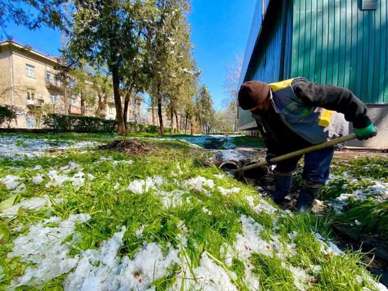 Работа по уборке веток с дорог, тротуаров и последствий снегопада продолжается.