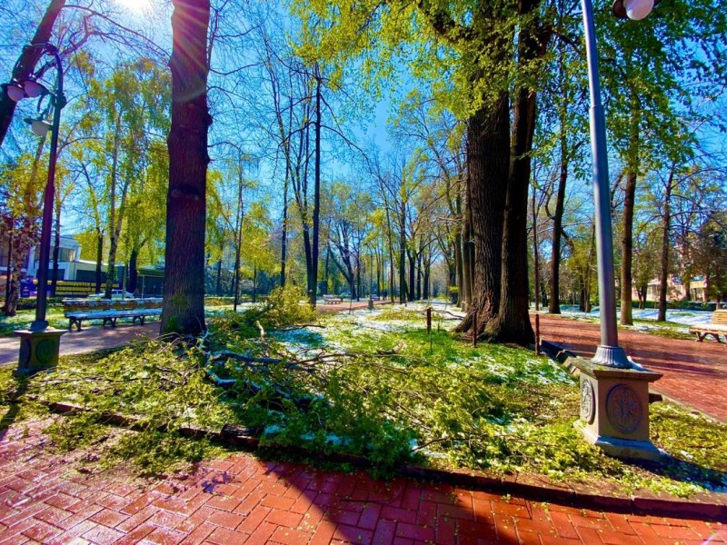 В связи с неустойчивой погодой, порывистым ветром и осадками, вчера в городе попадали деревья, к счастью, пострадавших нет. Основной причиной падений является мокрый снег, а также длительное не обновление деревьев поэтому внешне здоровые деревья, но с прогнившими корнями, не выдержали сильного ветра с мокрым снегом. Даже на молодых и здоровых деревьях образовались заломы.