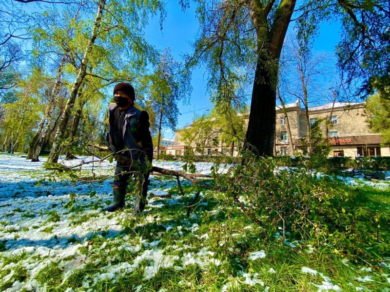 На местах работали 160 человек, 15 единиц техники Бишкекзеленхоза, также на подмогу к коллегам пришли 32 сотрудника Тазалыка на 11 единицах спецтехники. На помощь Зеленхозу пришли сотрудники «Бишкексвет» и «Бишкекасфальтсервис».