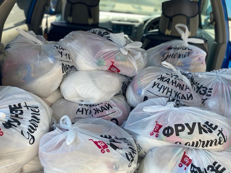 Порядка тысячи жителей жилых массивов получили корзины с продуктами от вице-мэра столицы ответственного за вопросы ЖКХ Мирлана Амантурова.