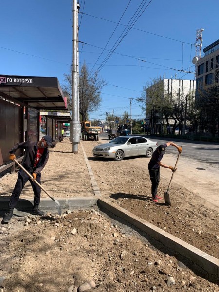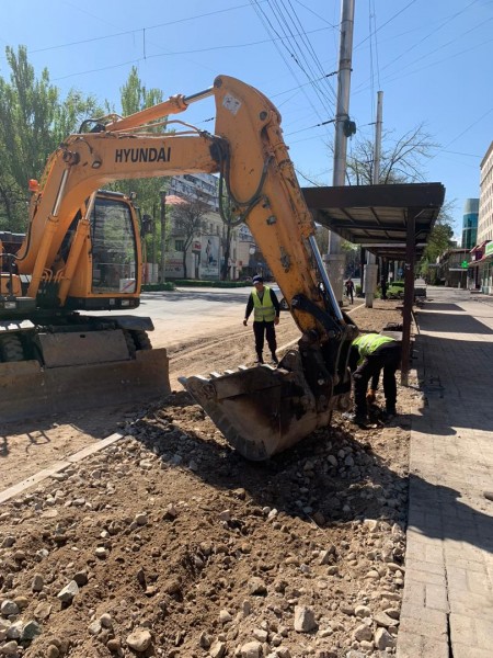 В самом центре города строительство «П»образной велодороги и тротуара, которые соединят юг и север столицы. Прямо сейчас наши сотрудники проводят подготовительные работы к прокладке асфальта на перекрёстке улиц Киевской и Байтик Баатыра для дальнейшего строительства пешеходной зоны.