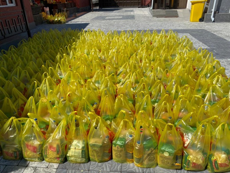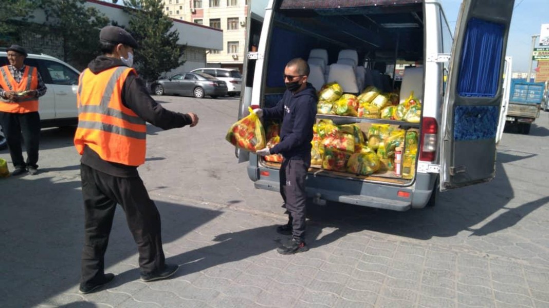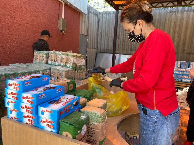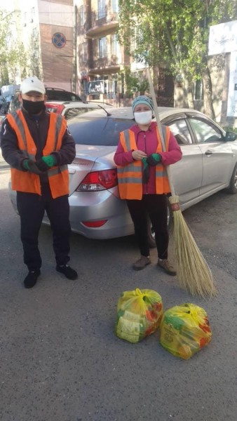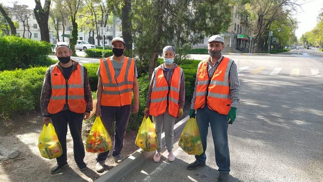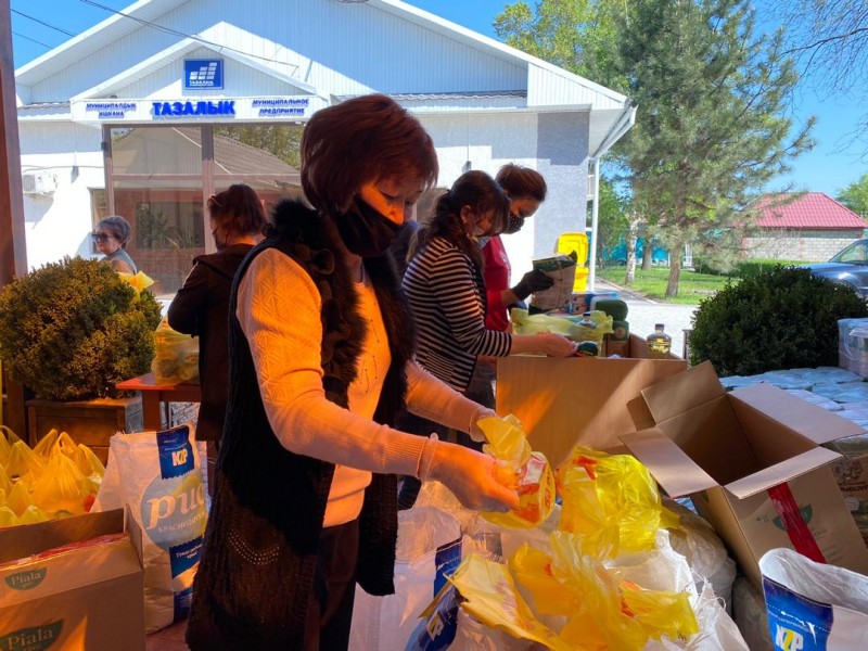 По инициативе директора Тазалыка Рыспека Сарпашова, каждому дворнику переданы продуктовые пакеты, в наборе: рис, мука, чай, растительное масло, сахар, макароны и гречка. Всего в большой семье Тазалыка 702 дворника: 180 человек работают в Первомайском районе, в Ленинском – 179, Октябрьский – 150, Свердловский – 162, в селе «Чоң-Арык» работает 31 дворник.