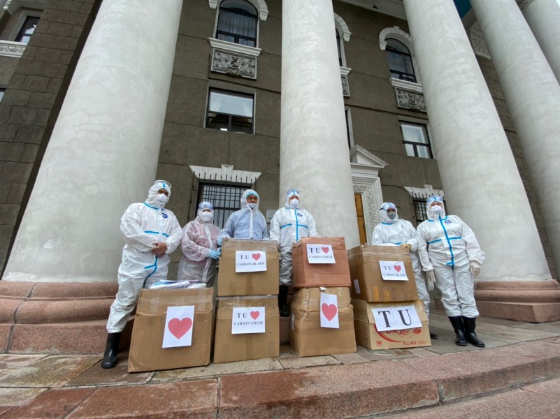 Бишкек получил еще 255 комплектов СИЗов, но уже турецкого производства. Поддержку Бишкеку оказана из Японии Карсоном Блейк Смитом (Carson Blake Smith). По словам его друга Нурлана Калыбекова и коллеги М.Тур-Улзий, Карсон Смит был в Кыргызстане всего несколько раз, но успел очень сильно полюбить Бишкек и сейчас очень сопереживает бишкекчанам. Защитные костюмы из прочного материала, в комплекте с бахилами до колен, перчатки, очки и респираторные маски FFP-2 обошлись предпринимателю в 7 тысяч долларов США,