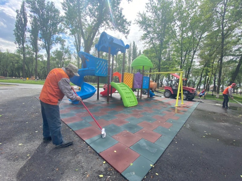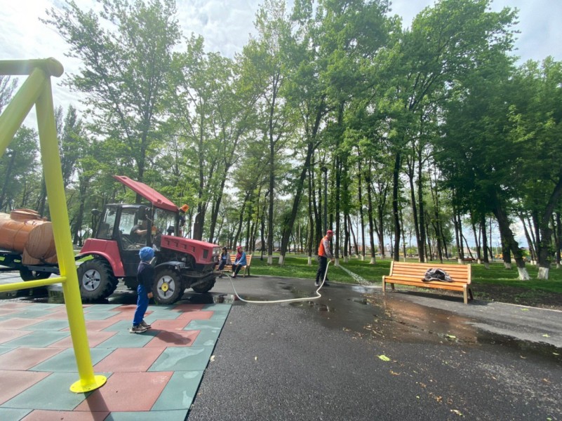 Сотрудники МП «Бишкекзеленоз» завезли грунт, посеяли газон порядка 6 гектаров, провели санитарную обрезку деревьев, снесли аварийные и сухостойные деревья и подняли кроны зеленых насаждений.