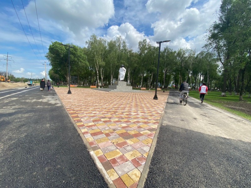 «Бишкекасфальтсервис» проложил асфальт, брусчатку, установил скамейки. Установлен памятник Ч. Тулебердиеву.