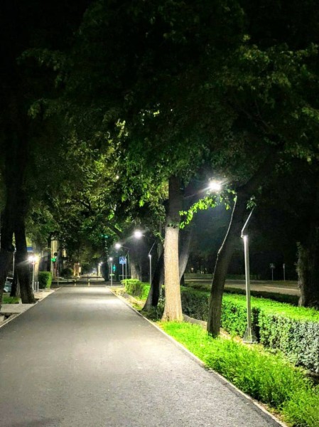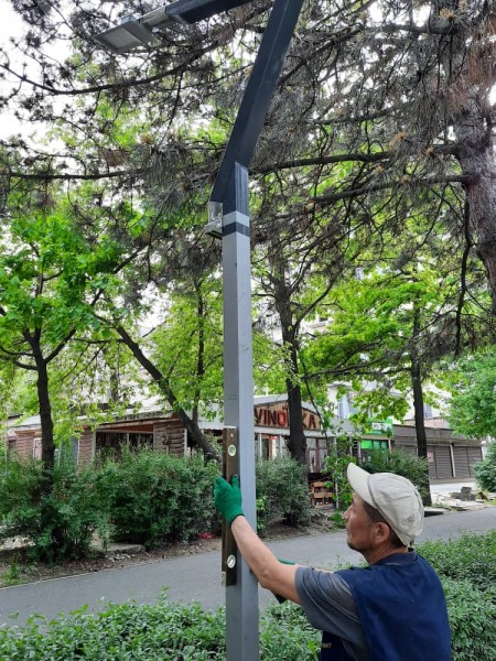 Установлено 60 светодиодных светильников, столько же торшерных стоек под них, проведено около 2 тысяч 210 метров кабельных линий под землей.